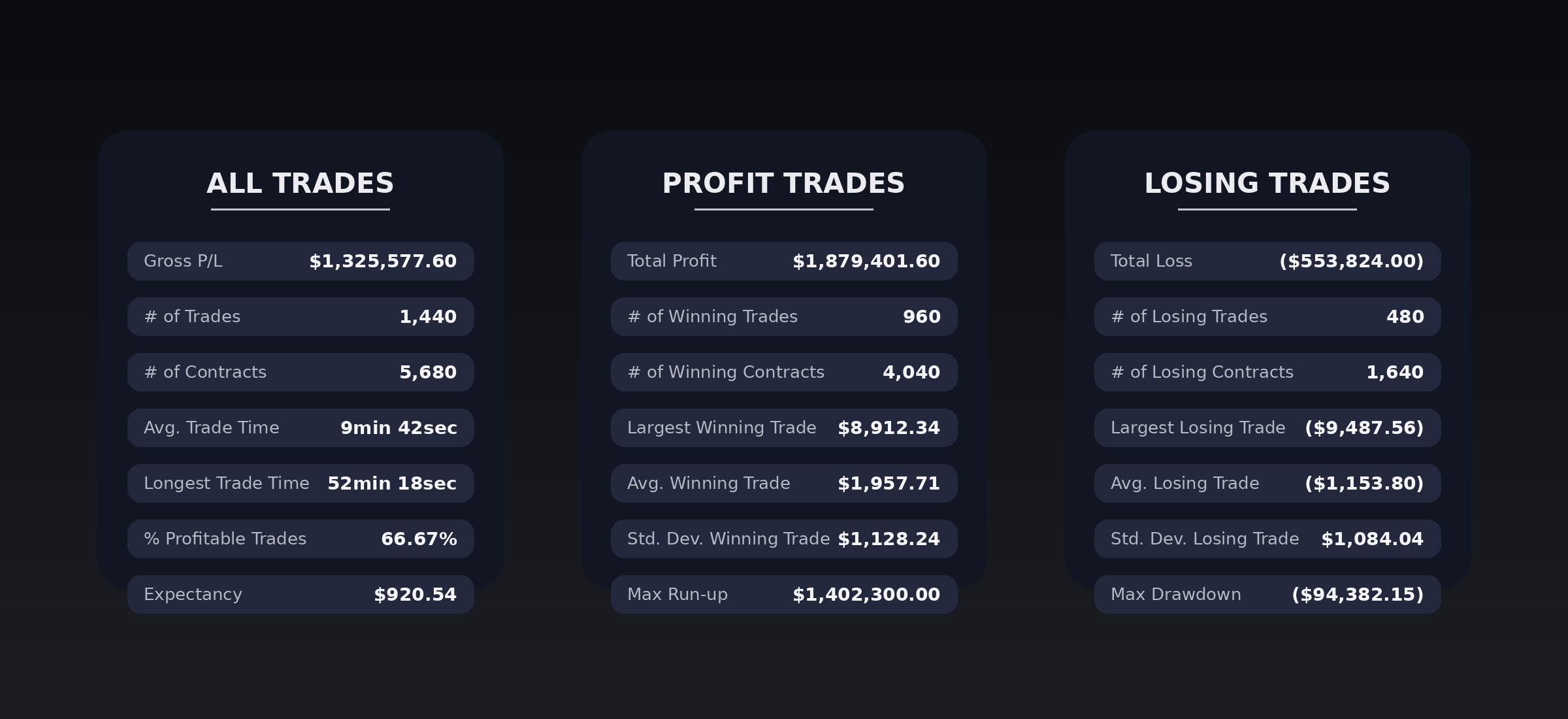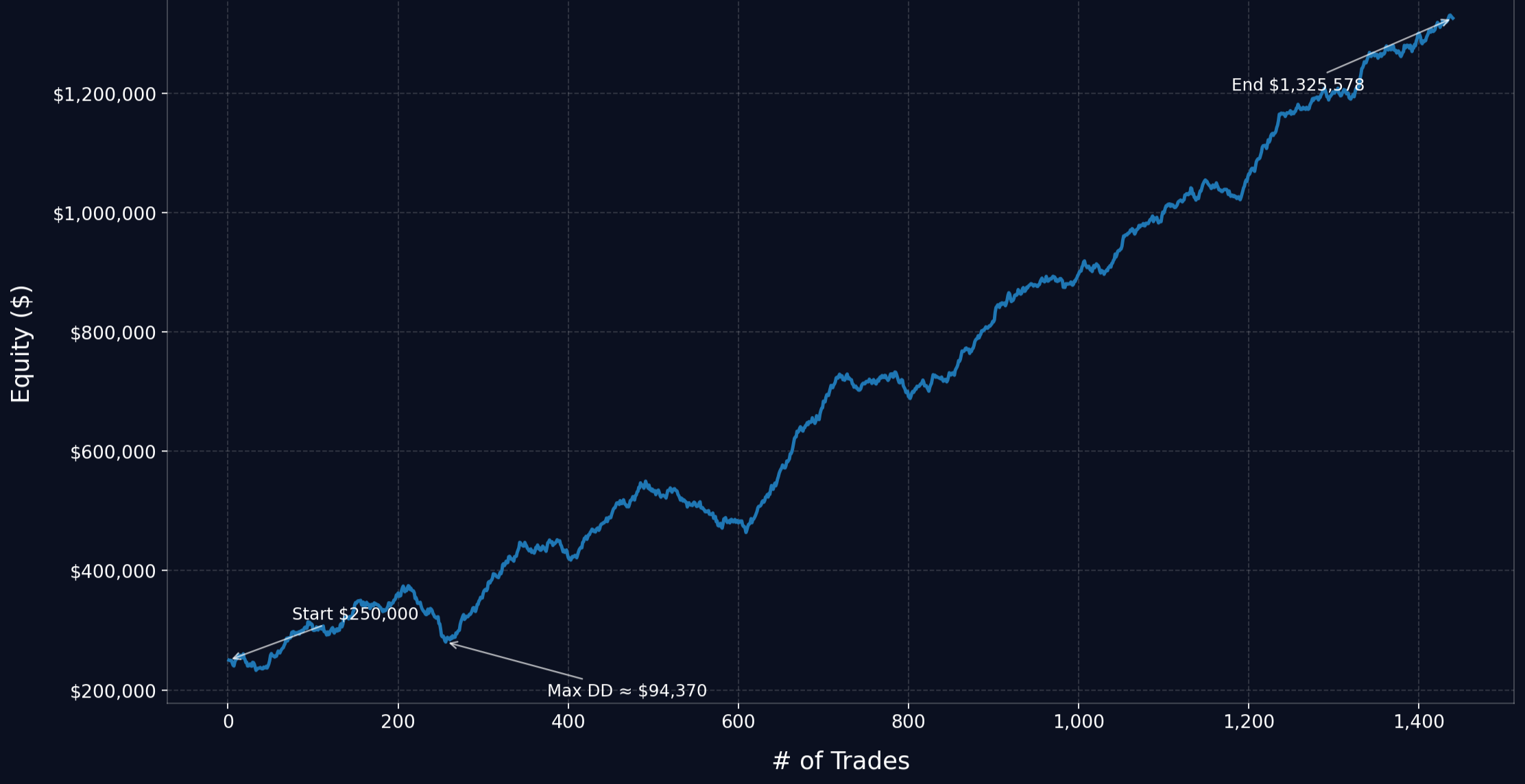 Starting capital: $250K Gross P/L: $1,325,578 Year: 2020-2026